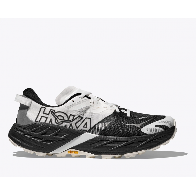 HOKA Speedgoat 7 er en trailsko, som er designet til at udfordre alle typer teknisk terræn, og samtidig yde en stor komfort. Speedgoat 7 skiller sig ud ift. tidligere modeller i serien, da den er en smule bredere og sidder bedre på foden. Til trods for det føles løbeskoen stadig stabil, og man har en god kontrol. Et godt grip fra sålen sørger for at du står rigtig godt fast i varieret trail terræn Den har en redesignet mesh overdel, der er mere åndbar end tidligere. Perfekt sko til trail både når det går opad og til de svære nedløb. Den egner sig godt til især de længere ture, hvor støddæmpningen i skoen virkelig kommer til sin ret.
